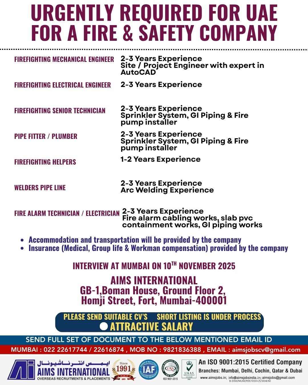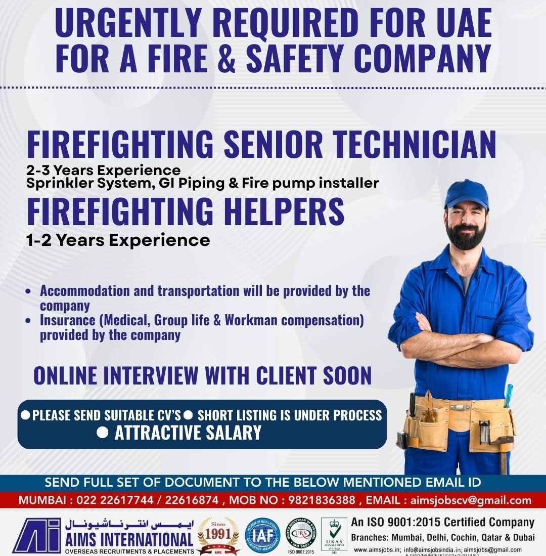 URGENTLY REQUIRED FOR UAE FOR A FIRE & SAFETY COMPANY