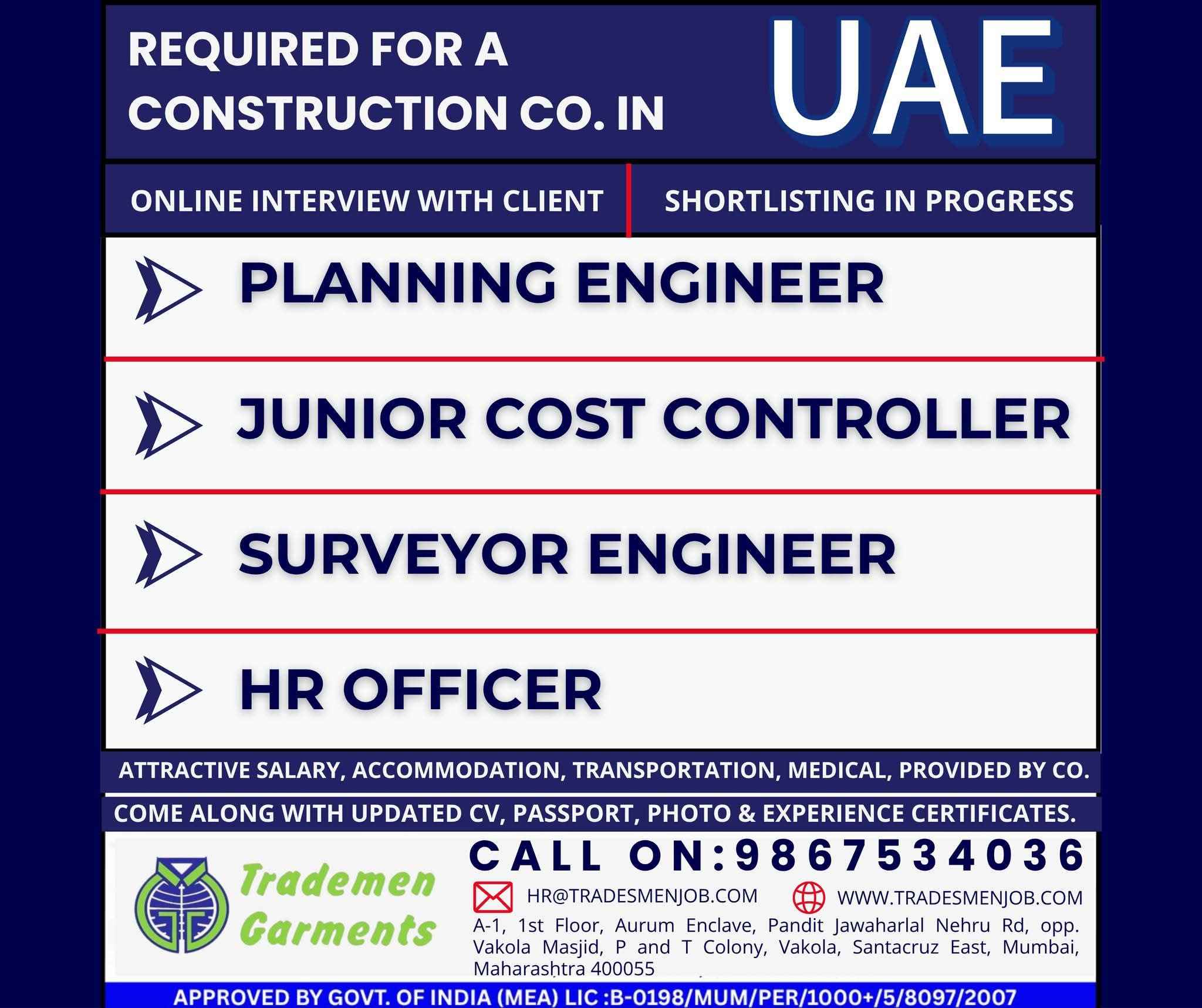 URGENTLY REQUIRED FOR ONE OF THE LEADING CONSTRUCTION COMPANY IN UAE
