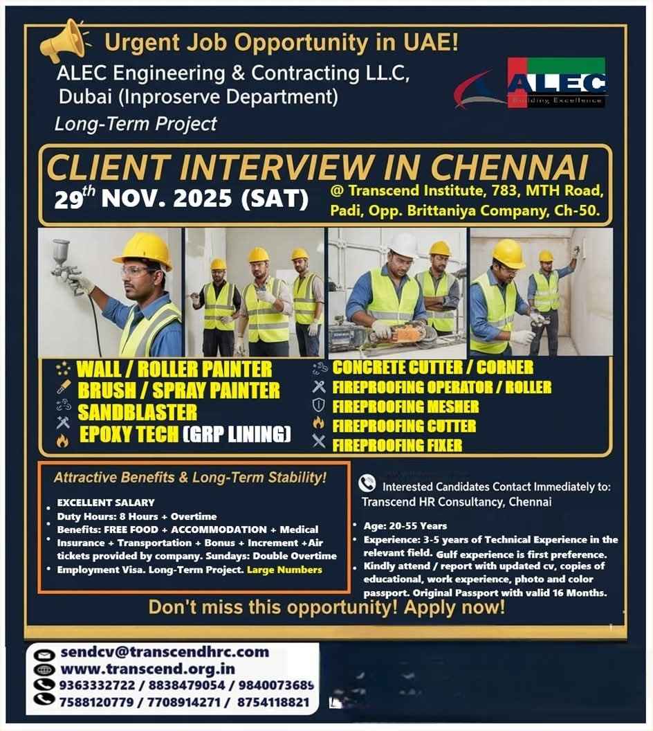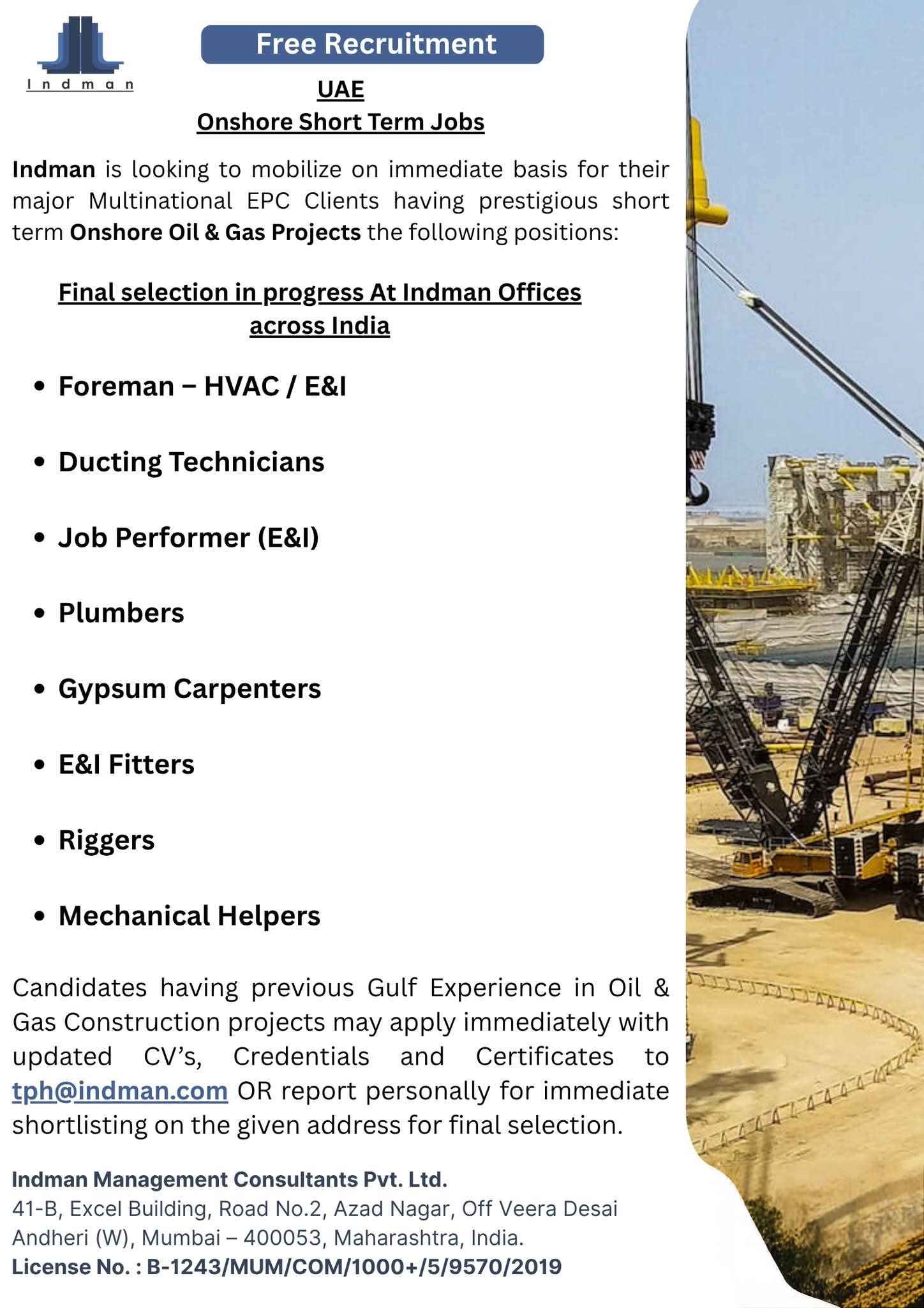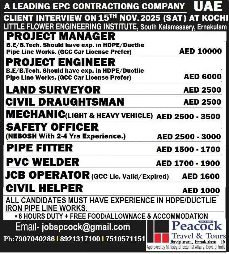 FREE RECRUITMENT | EPC JOB OPPORTUNITIES FOR UAE