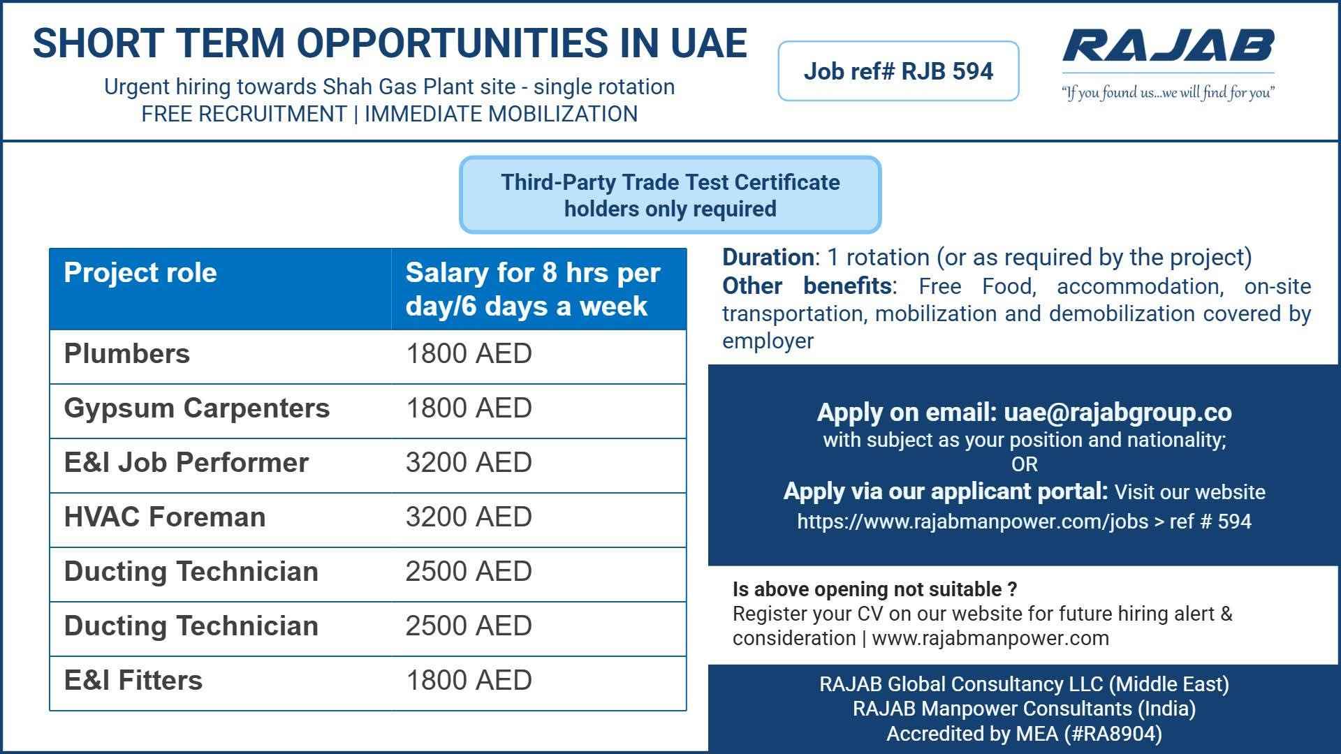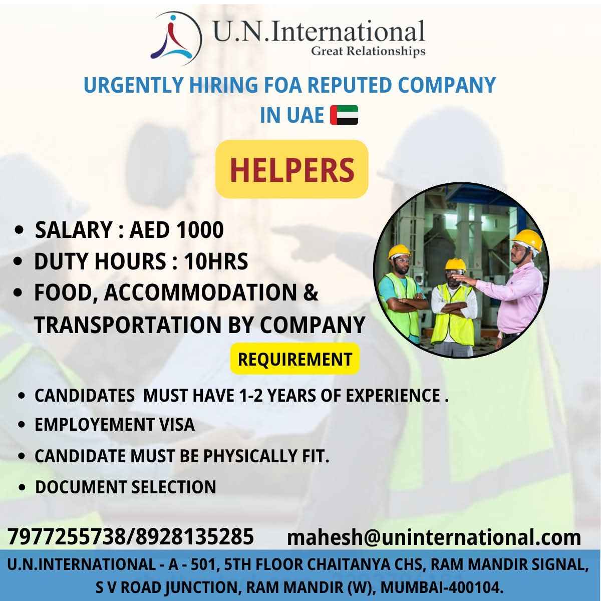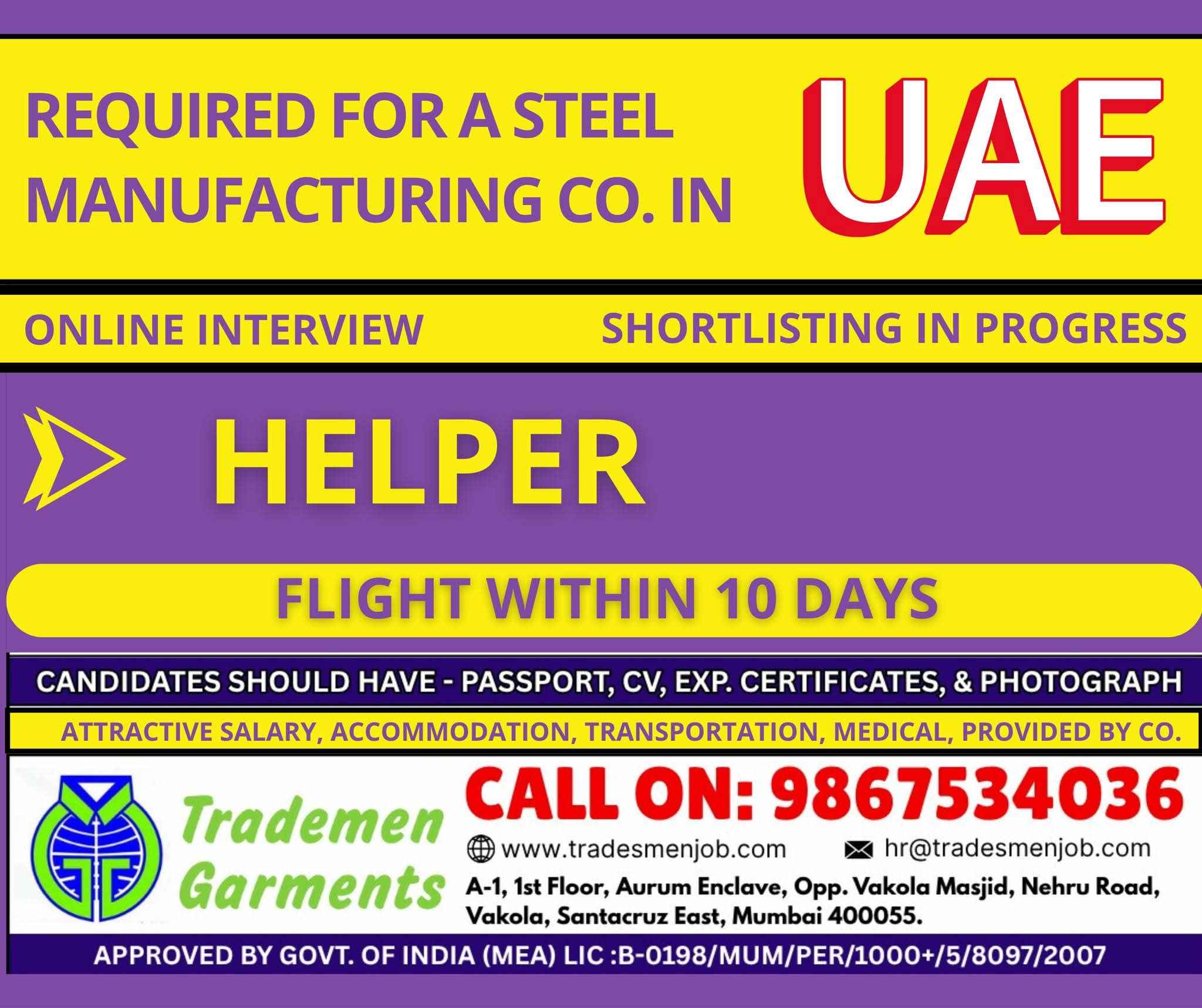 URGENTLY REQUIREMENT FOR UAE