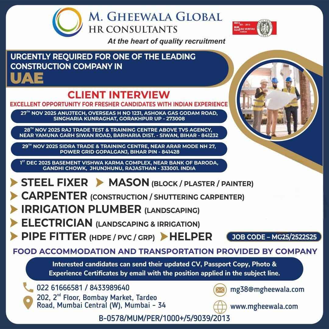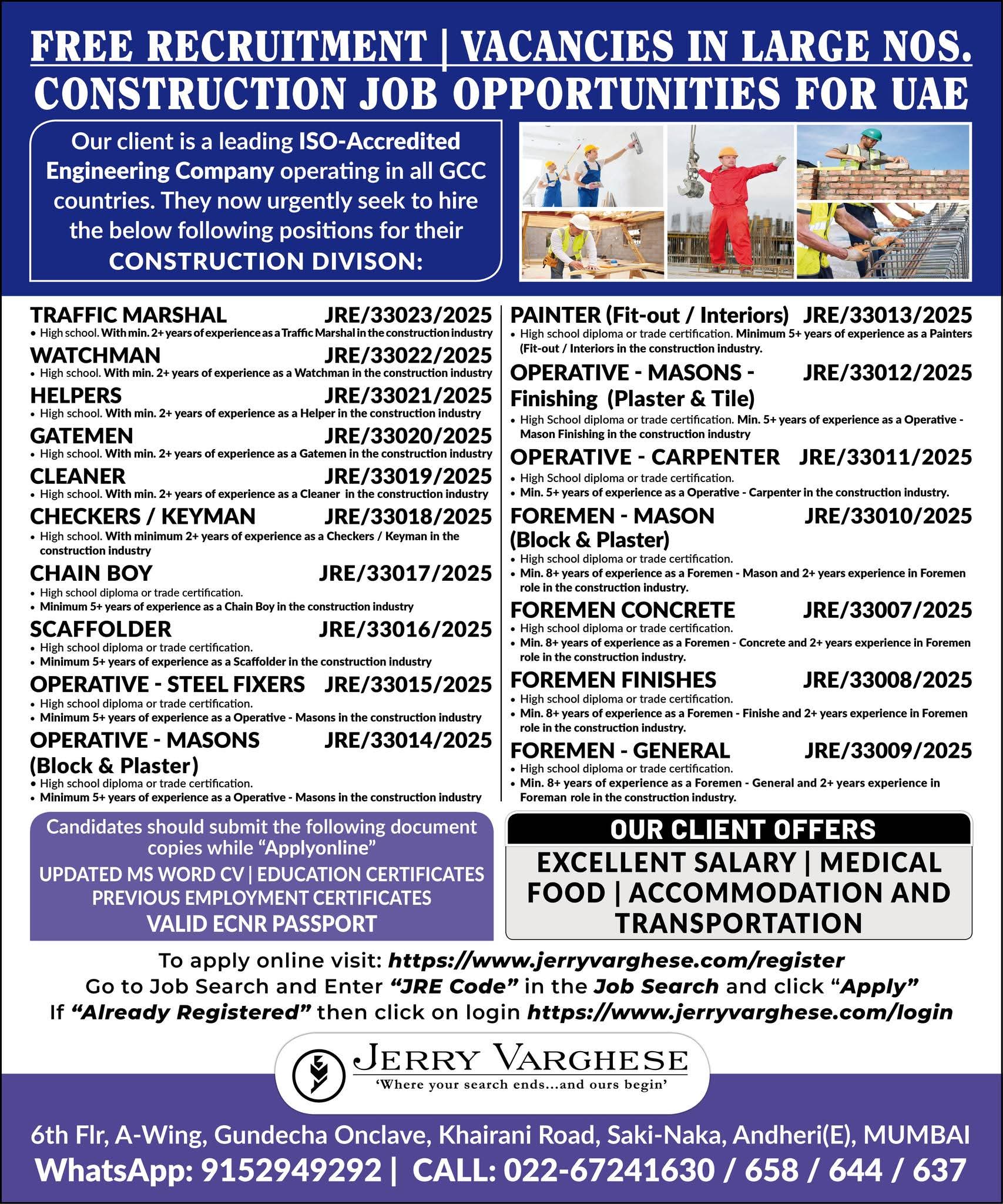 CONSTRUCTION JOB OPPORTUNITIES FOR UAE