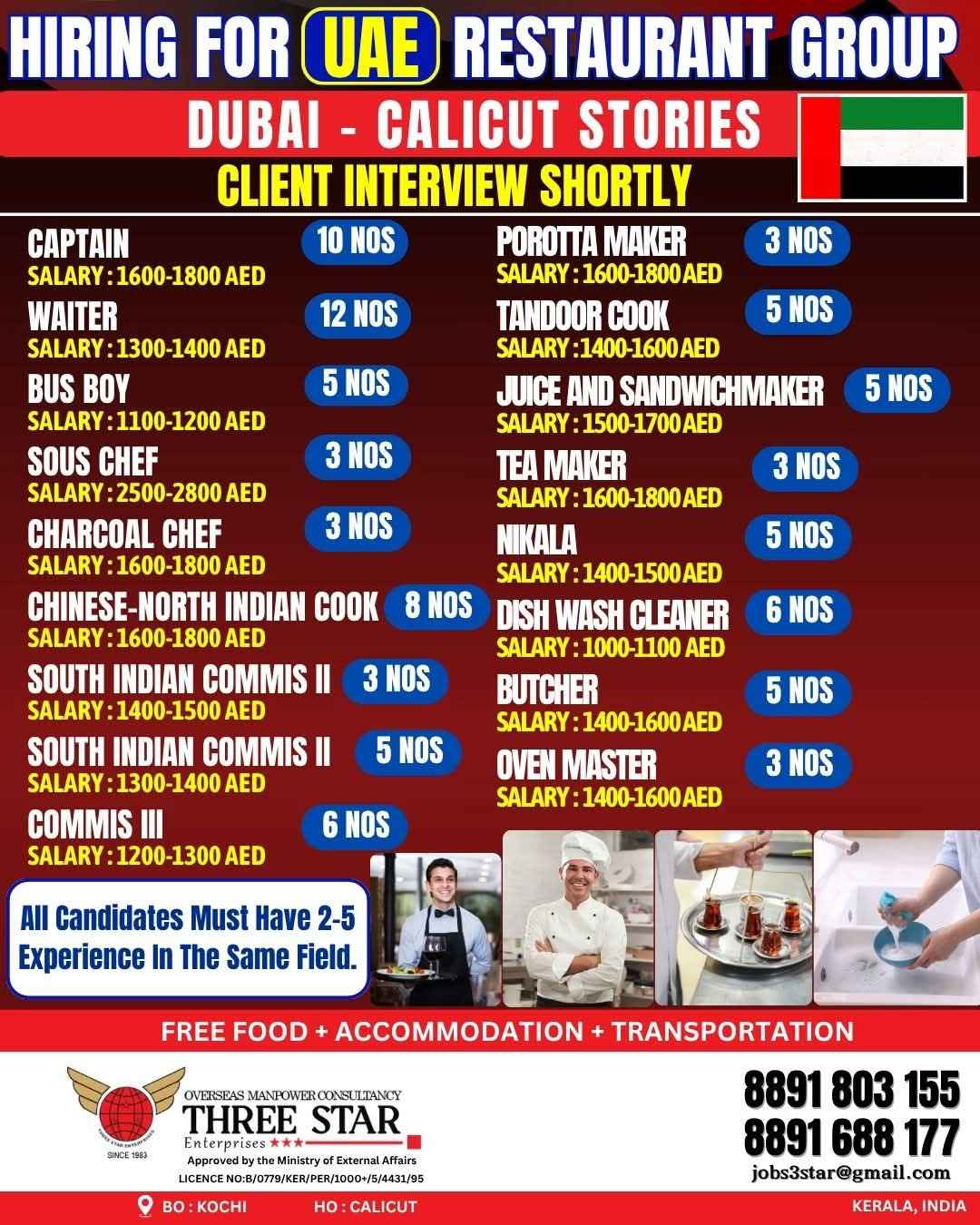 URGENT REQUIREMENT FOR 3 STAR, 5 STAR HOTELS IN UAE