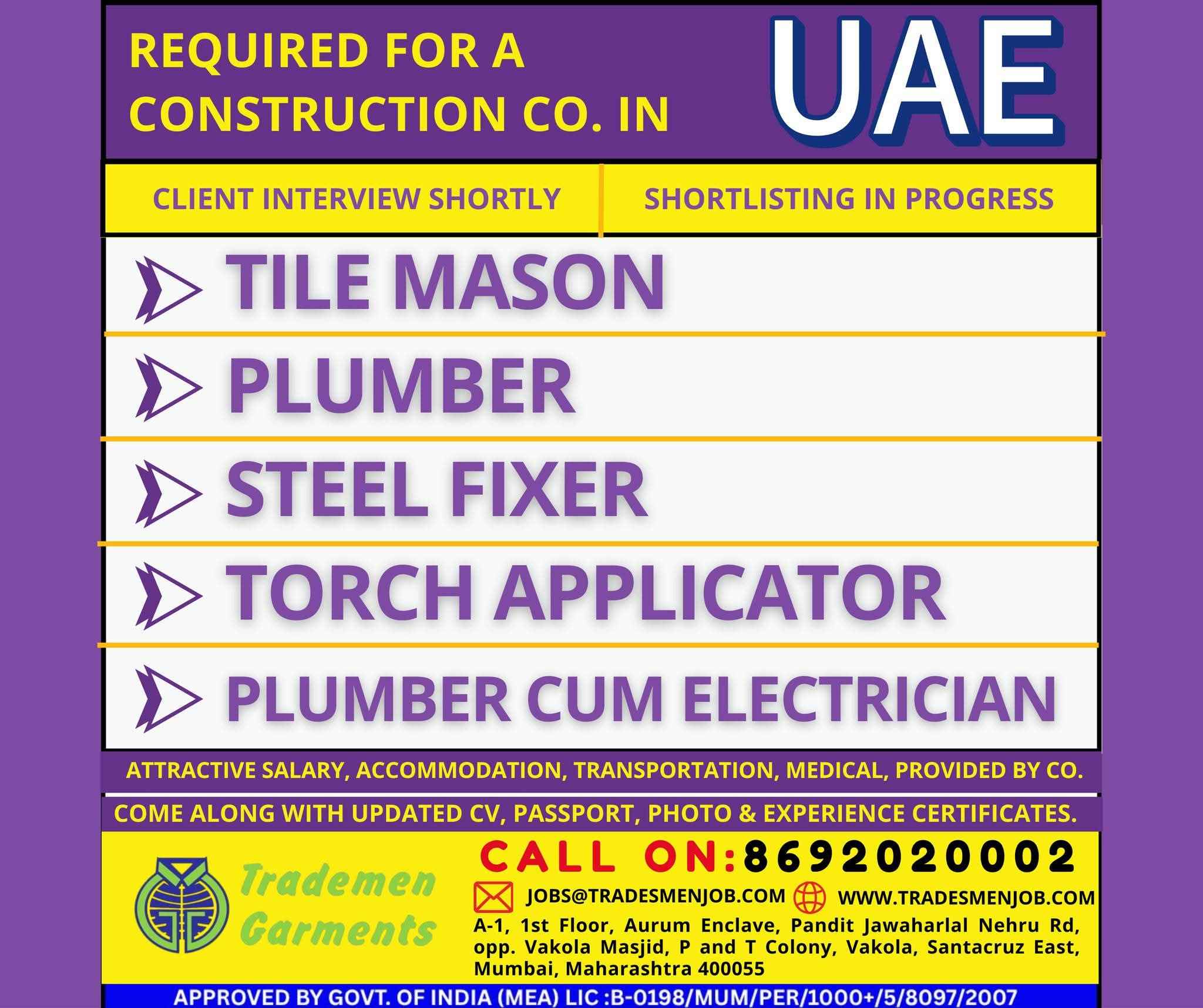 Urgently Required For UAE