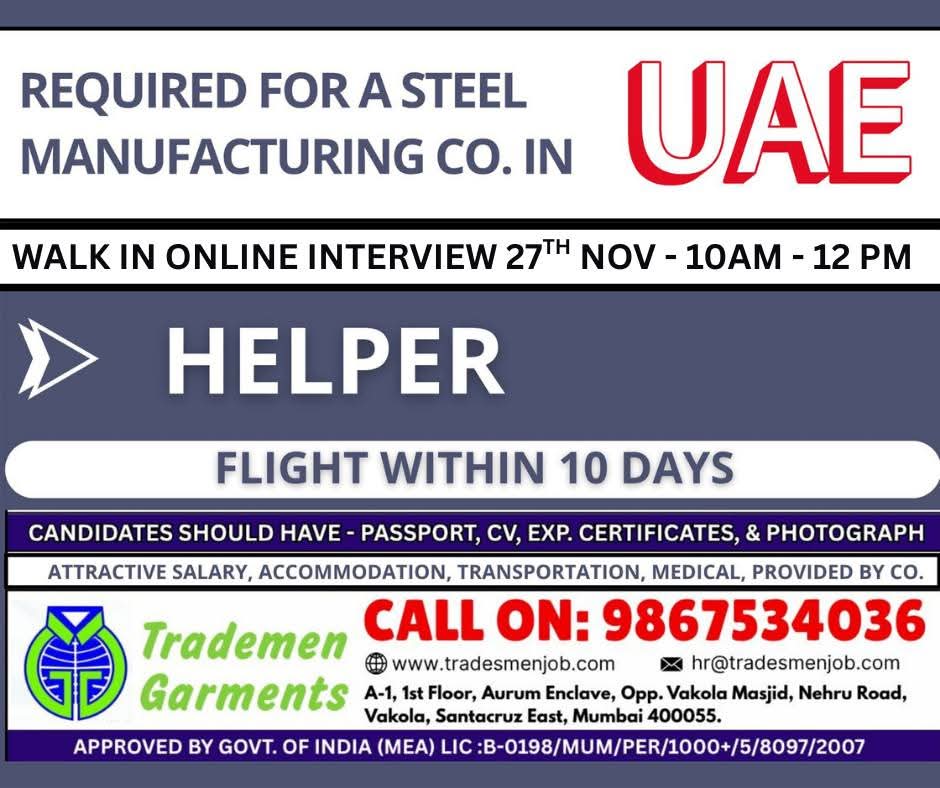 Urgent Requirement For Uae