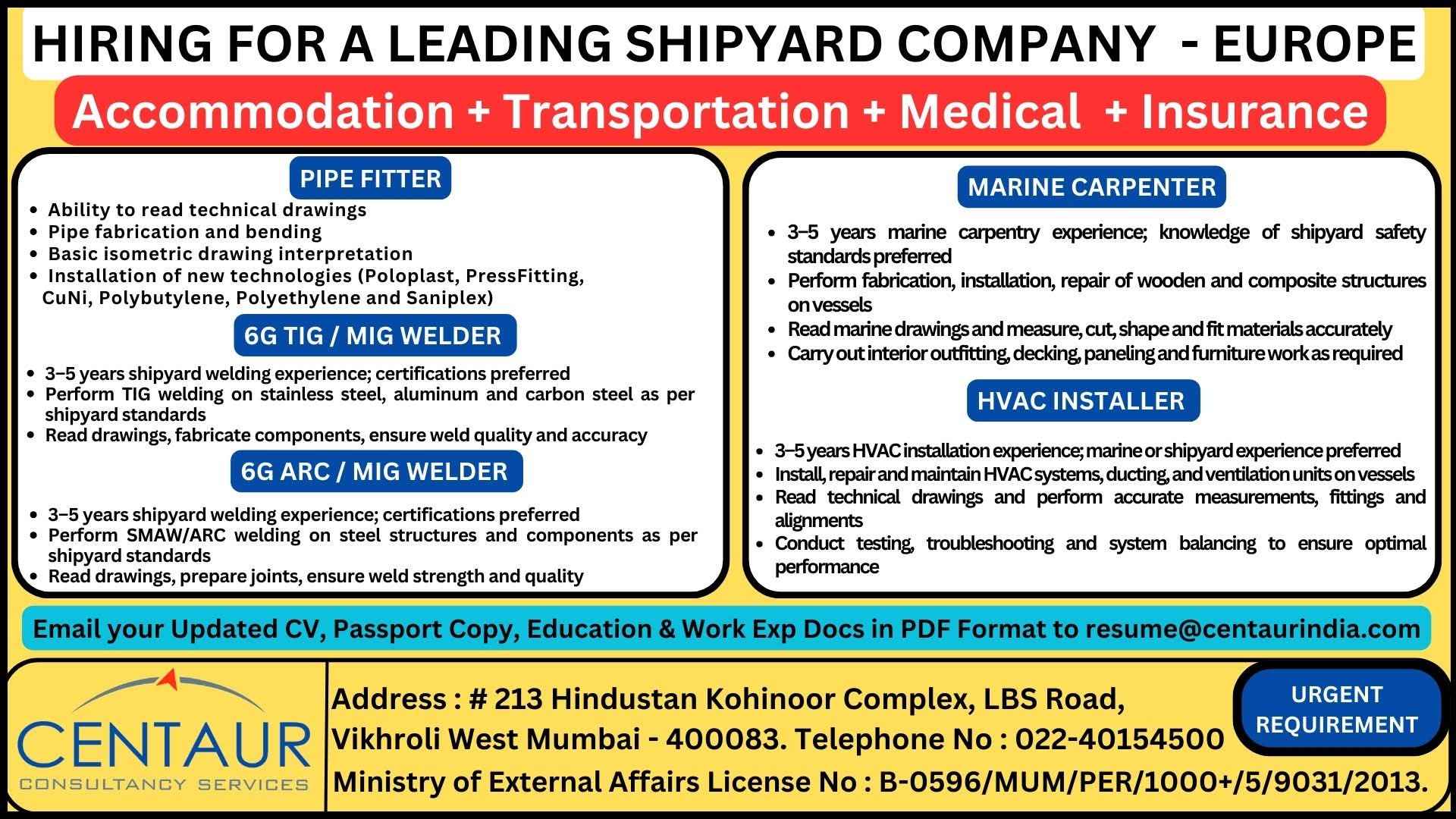 HIRING FOR A LEADING SHIPYARD COMPANY - EUROPE