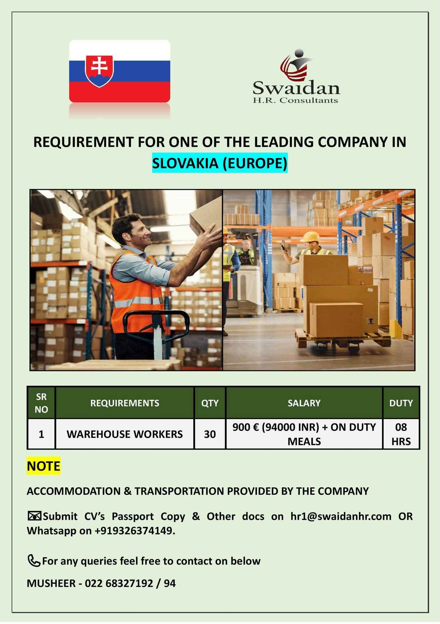 REQUIREMENT FOR ONE OF THE LEADING COMPANY IN SLOVAKIA (EUROPE)