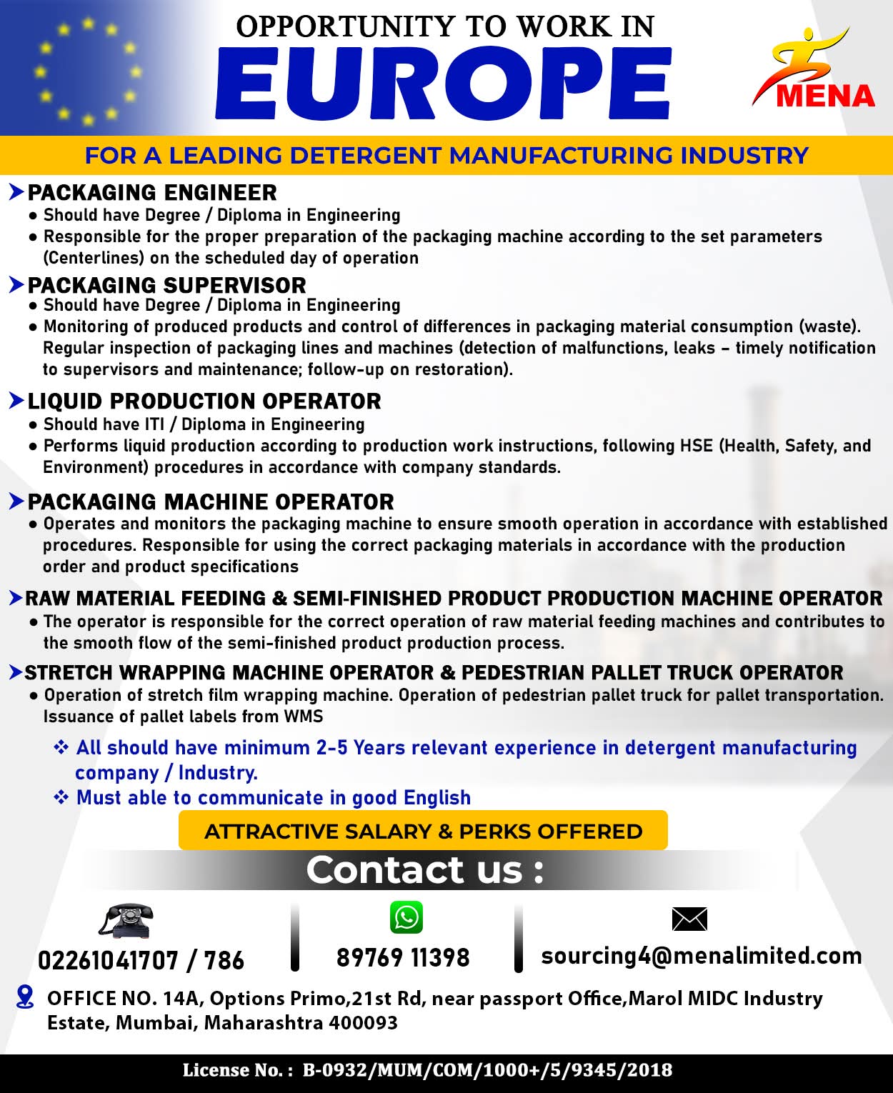 REQUIREMENT FOR EUROPE PRODUCTION MANUFACTURING OFFICER